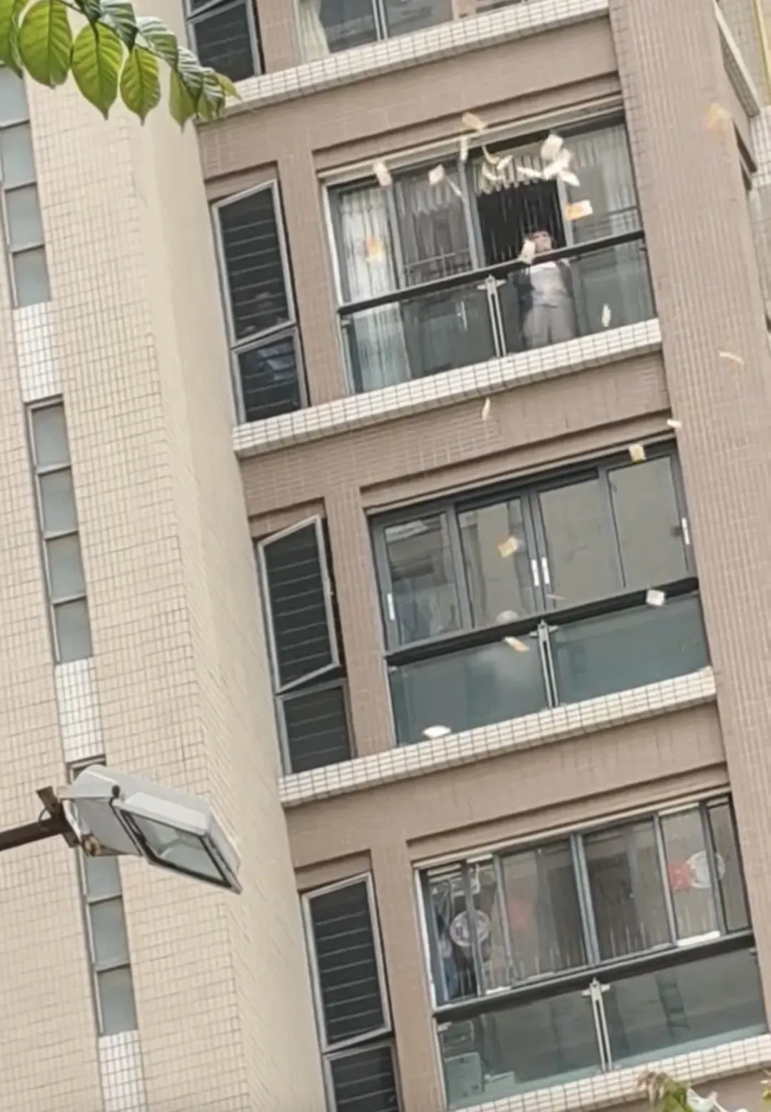 汕头一女子在高楼抛撒大量港币引人哄抢,当地派出所回应