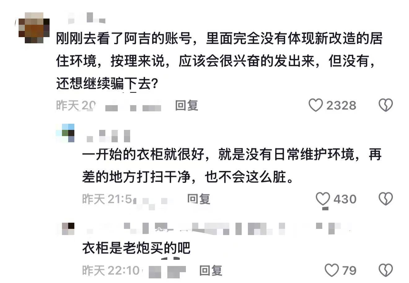 在阿吉的视频评论区,许多热心网友表示要寄送物资;还有博主透露,自己曾给阿吉寄去一台冰箱,后来却发现在“B太”的视频中,冰箱并非自己送的那台。